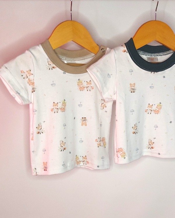 Delicada remera de bebé de mangas cortas, perfecta para la comodidad y el estilo tierno del pequeño, con un diseño temático de bosque.